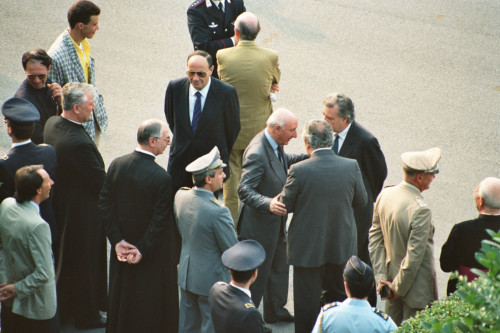Carlo Bernini in attessa dell'arrivo di Papa Giovanni Paolo II da Lorenzago di Cadore all'Aeroporto Militare di Treviso in località Istrana, per la sua partenza per Roma a seguito delle vacanze estive