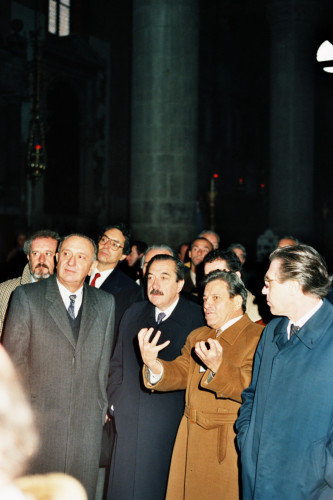 Il Presidente della Repubblica Argentina Raùl Ricardo Alfonsin (al centro)a Venezia nel 1987, in visita la Basilica di Santa Maria Gloriosa dei Frari, accopagnato dal Presidente della Regione Veneto Carlo Bernini (a destra)