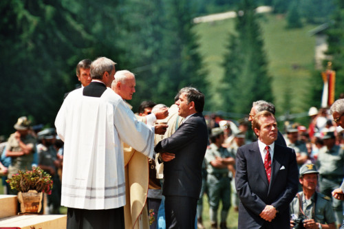 Papa Giovanni Paolo II durante la celebrazione dell'eucarestia presso Col Cumano in occasione del suo incontro con la Diocesi e di Belluno - Feltre