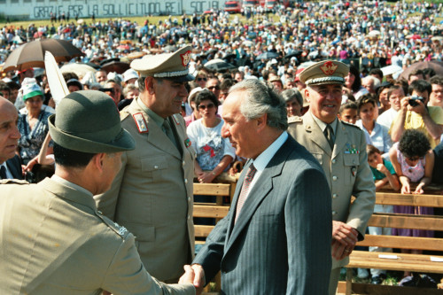Carlo Bernini parla con alcune persone al termine dell'incontro di Papa Giovanni Paolo II con la Diocesi e di Belluno - Feltre
