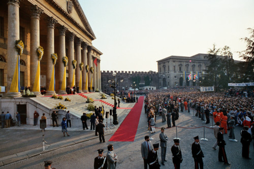 Il pubblico di fedeli raccolti in Piazza Brà a Verona in occasione della visita di Papa Giovanni Paolo II