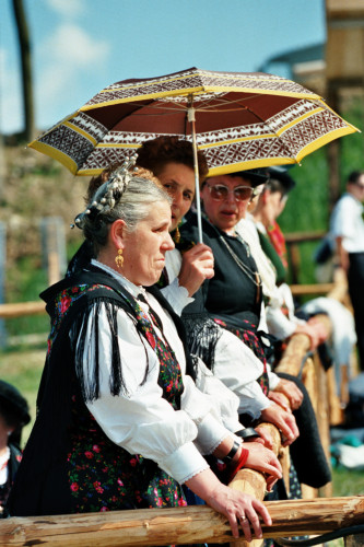 Gruppo folkloristico locale in attesa del saluto di Papa Giovanni Paolo II durante l'incontro con la Diocesi e di Belluno - Feltre