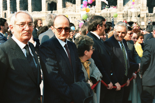 Il pubblico di fedeli raccolto presso Piazza Brà in occasione della visita di Papa Giovanni Paolo II a Verona