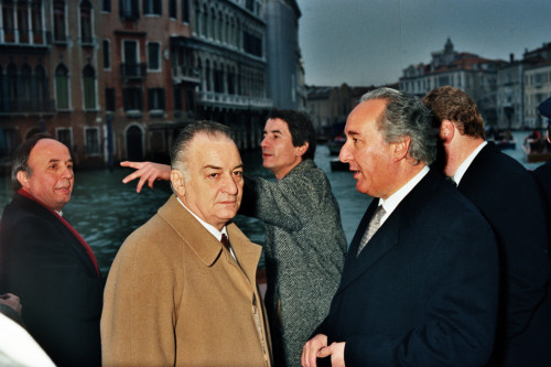 Carlo Bernini (a destra) Presidente della Regione Veneto durante la visita del Presidente della Repubblica Argentina Raùl Ricardo Alfonsin a Venezia nel 1987