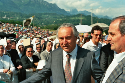 Carlo Bernini parla con alcune persone al termine dell'incontro di Papa Giovanni Paolo II con la Diocesi e di Belluno - Feltre