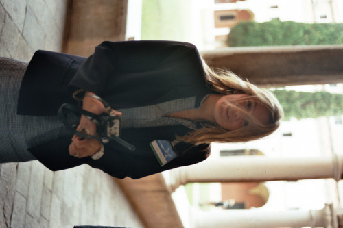 Primo piano di una donna nel chiostro del convento di San Giorgio, Venezia