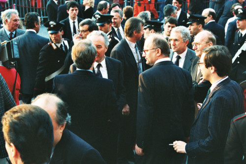 Carlo Bernini, tra le autorità pubbliche riunite, in piazza Brà a Verona in occasione della visita pastorale di Papa Giovanni Paolo II