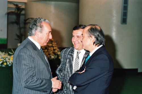 Carlo Bernini, Presidente della Regione Veneto, tra gli imprenditori riuniti presso l'Agricenter in attesa dell'arrivo di Giovanni Paolo II in visita a Verona