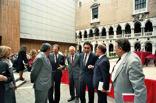 Nereo Laroni e Antonio Casellati tra alcune persone del pubblico presente alla presentazione della mostra: "Traci. Arte e cultura nelle terre di Bulgaria", nell'appartamento del Doge in Palazzo Ducale, Venezia