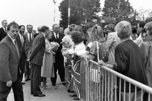 Delegazioni di benvenuto all'aeroporto San Giuseppe di Treviso. La Regina Madre incontra la gente.