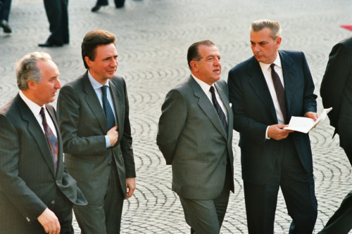 Carlo Bernini, Presidente della Regione Veneto, con Carlo Fracanzani presso Piazza Brà in occasione della visita pastorale di Papa Giovanni Paolo II a Verona