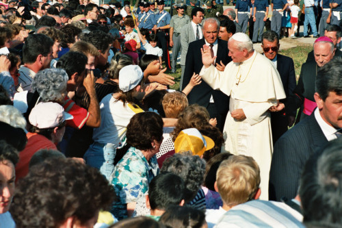 Papa Giovanni Paolo II tra il pubblico in occasione del suo incontro con i fedeli della Diocesi e di Belluno - Feltre