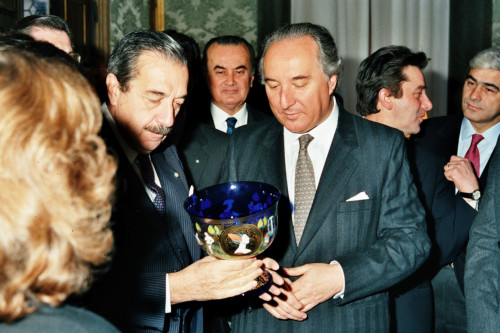 Il Presidente della Repubblica Argentina Raùl Ricardo Alfonsin (a sinistra)in visita a Venezia nel 1987, accompagnato da Carlo Bernini (al centro)Presidente della Regione Veneto
