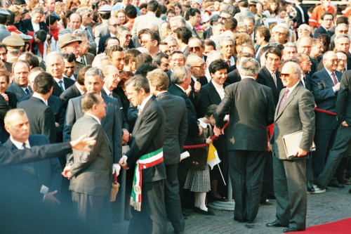 Carlo Bernini, Presidente della Regione Veneto, tra le autorità civili in Piazza Brà in occasione della visita pastorale di Papa Giovanni Paolo II a Verona