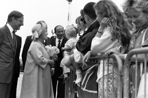 Delegazioni di benvenuto all'aeroporto San Giuseppe di Treviso. La Regina Madre incontra la gente.