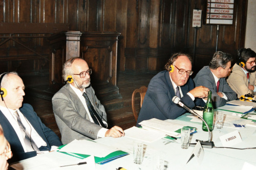 Servizio fotografico ripreso durante la Conferenza sulla Cooperazione Economica in Europa presso l'Isola di San Giorgio, Venezia nel 1986