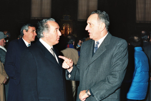 Il Presidente della Repubblica Argentina Raùl Ricardo Alfonsin a Venezia nel 1987, in visita la Basilica di Santa Maria Gloriosa dei Frari; ad accompagnarlo il Presidente della Regione Veneto Carlo Bernini (a sinistra)