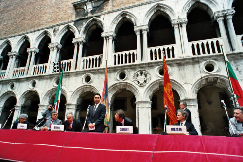 Il comitato di presentazione della mostra: "Traci. Arte e cultura nelle terre di Bulgaria", nel cortile di Palazzo Ducale, Venezia