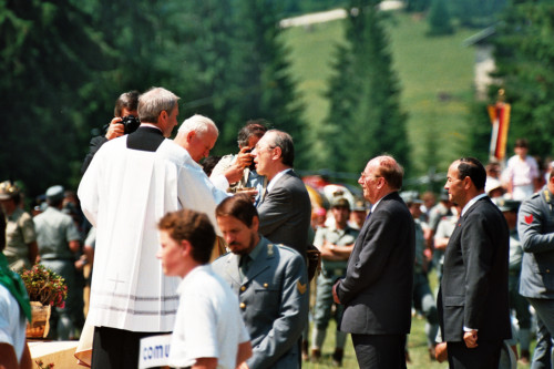 Papa Giovanni Paolo II durante la celebrazione dell'eucarestia presso Col Cumano in occasione del suo incontro con la Diocesi e di Belluno - Feltre