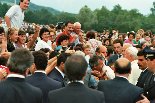 Papa Giovanni Paolo II tra il pubblico in occasione del suo incontro con i fedeli della Diocesi e di Belluno - Feltre