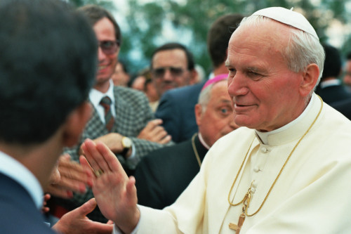 Papa Giovanni Paolo II tra il pubblico in occasione del suo incontro con i fedeli della Diocesi e di Belluno - Feltre