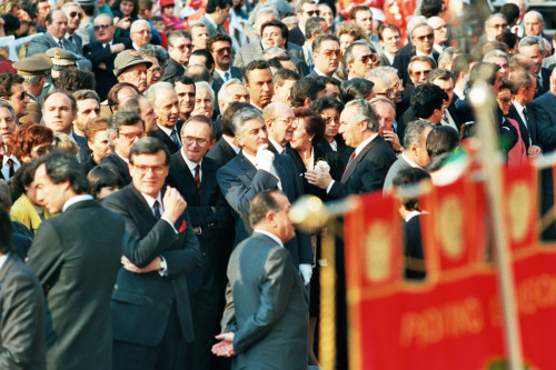Carlo Bernini, Presidente della Regione Veneto, tra le autorità civili in Piazza Brà in occasione della visita pastorale di Papa Giovanni Paolo II a Verona