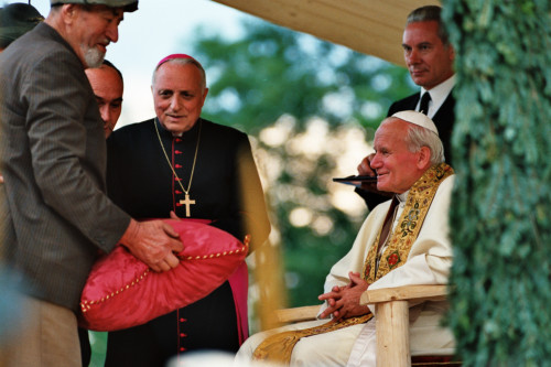 Papa Giovanni Paolo II incontra i fedeli della Diocesi e di Belluno - Feltre, al centro il Vescovo Ducoli Maffeo