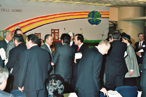 Gli imprenditori riuniti presso l'Agricenter in attesa dell'arrivo di Giovanni Paolo II in visita a Verona