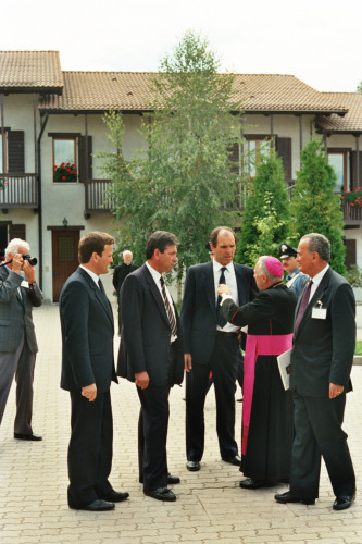 Vescovo Ducoli Maffeo presso il Centro Papa Luciani a Santa Giustina, organizza con alcune persone la visita di Papa Giovanni Paolo II