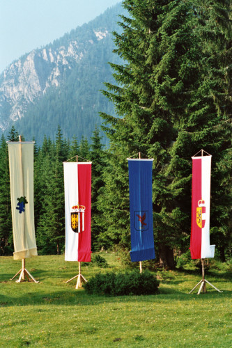 Alcune bandiere presso Col Cumano in occasione della visita di Papa Giovanni Paolo II alla Diocesi e di Belluno - Feltre