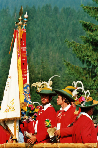 Alcuni membri di un gruppo folkloristico alpino presente in occasione dell'incontro presso Col Cumano di Papa Giovanni Paolo II con la Diocesi e di Belluno - Feltre