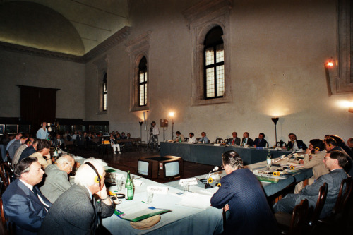 Servizio fotografico ripreso durante la Conferenza sulla Cooperazione Economica in Europa presso l'Isola di San Giorgio, Venezia nel 1986