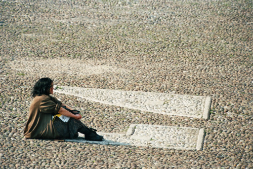 Il ritratto di una donna del pubblico di fedeli riunito in Piazza Brà in occasione della visita pastorale di Papa Giovanni Paolo II