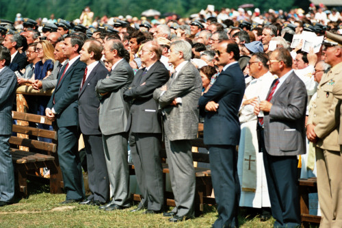 Il pubblico di fedeli e i giornalisti giunti presso Col Cumano in occasione della visita di Papa Giovanni Paolo II