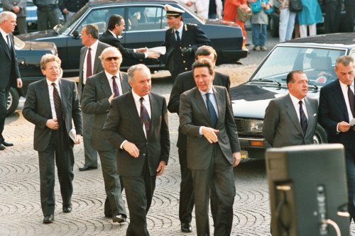 Carlo Bernini, Presidente della Regione Veneto, con Carlo Fracanzani presso Piazza Brà in occasione della visita pastorale di Papa Giovanni Paolo II a Verona