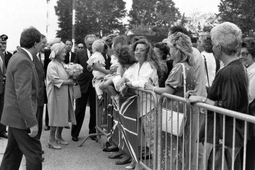 Delegazioni di benvenuto all'aeroporto San Giuseppe di Treviso. La Regina Madre incontra la gente.