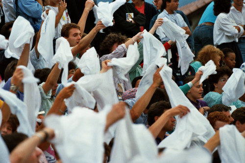 Il pubblico presente durante l'incontro tra Papa Giovanni Paolo II e i fedeli della Diocesi e di Belluno - Feltre al Centro Papa Luciani