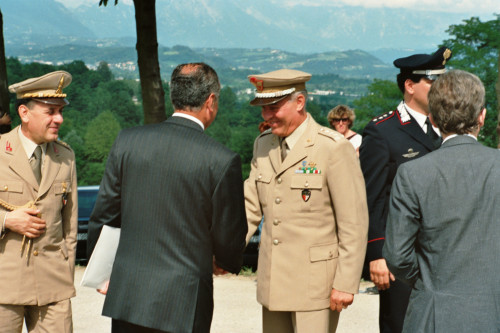 Rappresentanti del corpo della Guardia di Finanza in attesa del saluto di Papa Giovanni Paolo II durante l'incontro con la Diocesi e di Belluno - Feltre