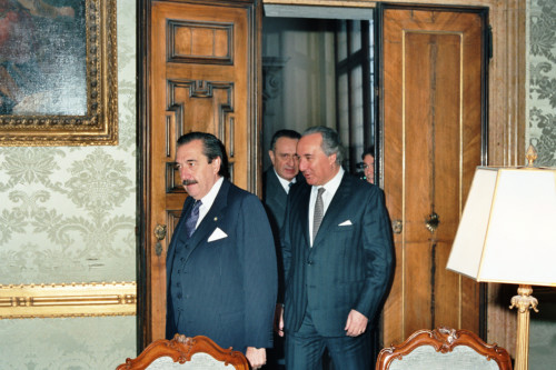 Il Presidente della Repubblica Argentina Raùl Ricardo Alfonsin in visita a Venezia nel 1987, durante l'incontro con Carlo Bernini (a destra)Presidente della Regione Veneto