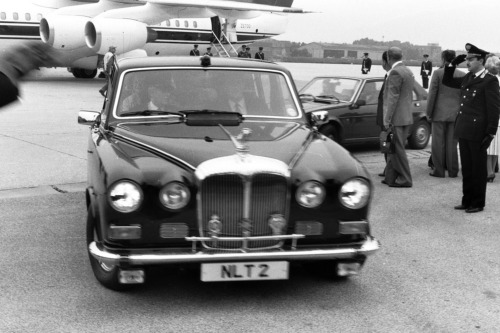 La Daimler scura con a bordo la Regina Mary Elizabethy. Aeroporto San Giuseppe di Treviso.