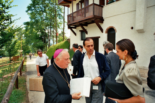 Il Vescovo Ducoli Maffeo e Giovanni Lanna presso il Centro Papa Luciani a Santa Giustina ripreso prima dell'arrivo di Papa Giovanni Paolo II