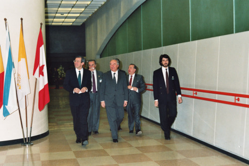 Carlo Bernini, Presidente della Regione Veneto accompagnato dal sindaco Gabriele Sboarina all'Agricenter in attesa dell'arrivo di Giovanni Paolo II; qui il Pontefice avrebbe incontrato alcuni imprenditori e rappresentanti dei diversi settori produttivi.