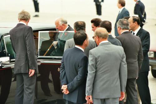 L'ambasciatore Lord Bridges sale in macchina, una Daimler scura