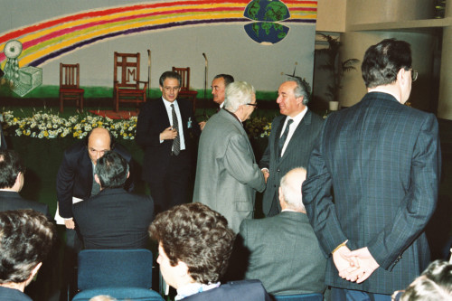 Carlo Bernini tra gli imprenditori riuniti presso l'Agricenter di Verona in attesa dell'arrivo di Giovanni Paolo II in visita pastorale