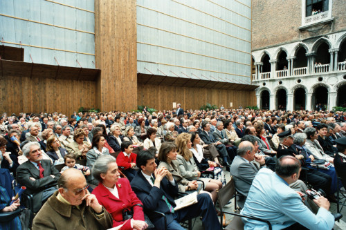Il pubblico alla presentazione della mostra "Traci. Arte e cultura nelle terre di Bulgaria", nel cortile di Palazzo Ducale, Venezia