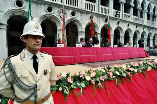 L'intervento di Roumen Katintcharov direttore del museo storico nazionale di Sofia durante la presentazione della mostra "Traci. Arte e cultura nelle terre di Bulgaria", nel cortile di Palazzo Ducale di Venezia