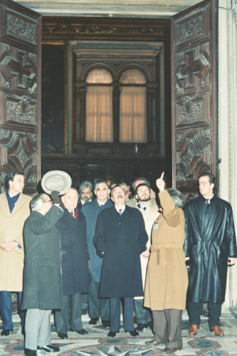Il Presidente della Repubblica Argentina (al centro)Raùl Ricardo Alfonsin a Venezia nel 1987, in visita la Basilica di Santa Maria Gloriosa dei Frari