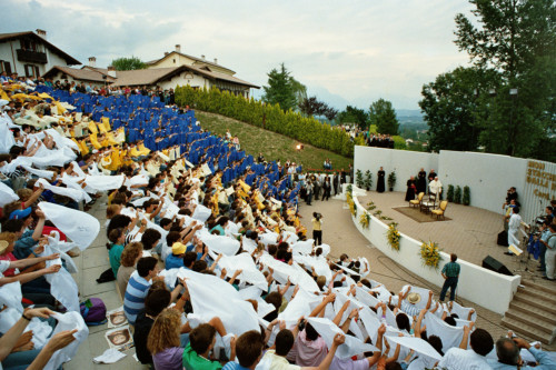Il pubblico presente durante l'incontro tra Papa Giovanni Paolo II e i fedeli della Diocesi e di Belluno - Feltre al Centro Papa Luciani