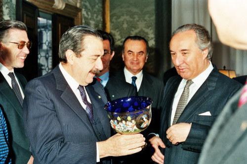 Il Presidente della Repubblica Argentina Raùl Ricardo Alfonsin (a sinistra)in visita a Venezia nel 1987, accompagnato da Carlo Bernini (al centro)Presidente della Regione Veneto