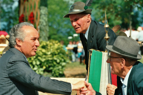 Carlo Bernini saluta alcuni ex combattenti della Grande guerra al termine dell'incontro di Papa Giovanni Paolo II con la Diocesi e di Belluno - Feltre